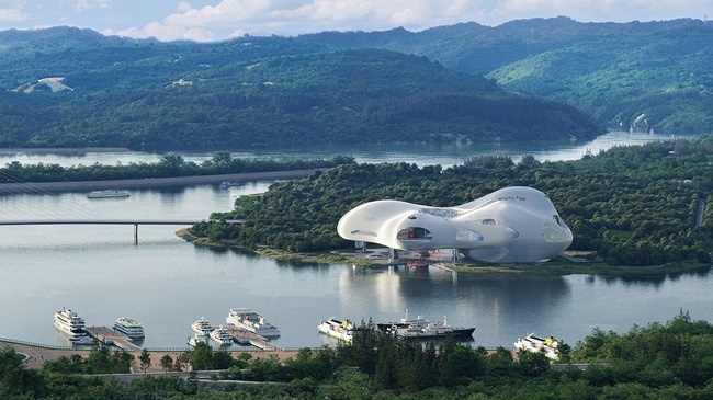 這座極具動態感的建築將成為當地一個熱鬧的表演藝術中心,包括一個1,600 座的大劇院、一個1,200 座的音樂廳、一個 400 座的黑匣子和分別位於屋頂和水邊的室外劇院。除了表演空間,該建築還包括教育設施、活動和展覽空間、排練室、咖啡廳、餐廳和觀景臺。混合功能的設定呼應了大劇院作為一個開放和充滿活力的公共場所的定位。OPEN 創始合夥人李虎表示:“大劇院的設計靈感來自宜昌的江水。看似柔軟的水其實蘊涵無限力 量。水是宜昌這座獨特的山水城市的靈魂。”