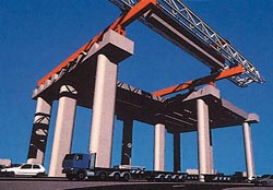 The operation sequence of segment launcher (C): The segment launcher transports the precast beam to the required position on the portal, making use of a sliding action on the supporting rail |
