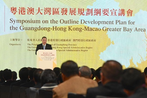 The HKSAR Government, together with the People's Government of Guangdong Province and the Macao Special Administrative Region Government held the Symposium on the Outline Development Plan for the Guangdong-Hong Kong-Macao Greater Bay Area on February 21 to introduce the contents of the Outline Development Plan and explore the development opportunities of the Greater Bay Area.